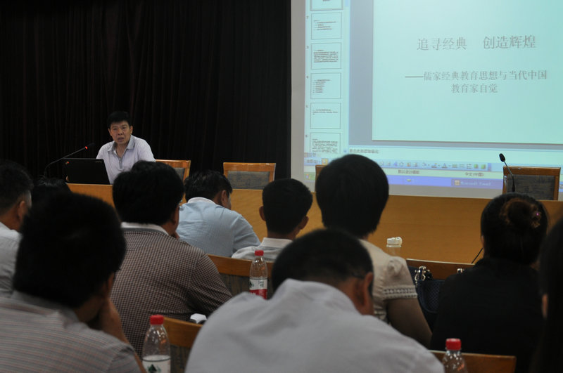 8月18日,金乡县教育局局长李英渠带领161名中小学校长和教育局全体成员来到我校,开展暑期校长读书班活动。我校党委副书记刘新生出席活动,并应邀作了题为《追寻经典 创造辉煌——儒家经典教育思想与当代中国教育家自觉》的报告。