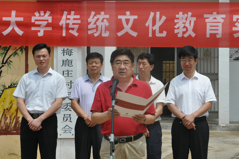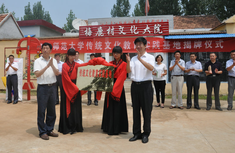 在梅鹿庄村,荆兆勋、刘新生、孙文亮出席了大发平台传统文化教育实践基地揭牌暨儒家文化齐鲁行启动仪式。荆兆勋与泗水县委书记范宇新共同为传统文化教育实践基地揭牌。孙文亮发表讲话,向实践基地的建成表示祝贺。他指出,传统文化教育实践基地的建成,是曲师大与地方合作的创举,以传统文化为桥梁,曲师大将充分发挥自身特色和优势服务地方发展,今后将陆续开展明德故事讲堂、国学诵读班等活动,为梅鹿庄村向社会主义新农村迈进贡献一份力量。活动前,孙文亮代表学校走访看望了梅路庄村老党员代表,送去了我校师生的问候和祝福。揭牌仪式结束后,明德故事会第一讲开讲,由历史文化学院王曰美教授主讲。