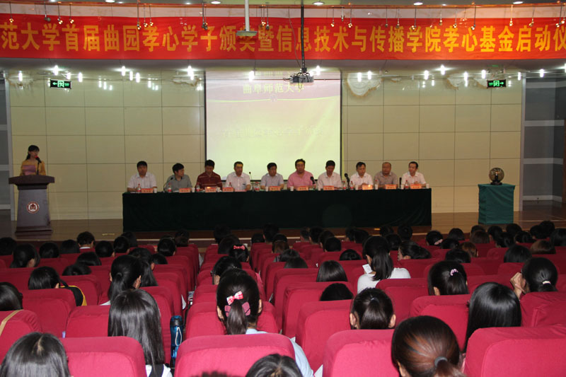 6月15日上午,我校首届“十大孝心学子”颁奖暨信息技术与传播学院孝心基金启动仪式在日照校区举行。我校党委副书记孙文亮,山东省服装协会副会长、淄博市政协委员、山东海思堡时装服饰集团有限公司董事长马学强,济宁硕信集团董事长赵向文,山东天蓝律师事务所律师张连民,济宁市德林堂药店经理马海峰,日照儒风酒店管理有限公司事业部执行经理牟晓强,桓台县委统战部副部长、民族与宗教事务局书记、局长郭亮,学生工作处、团委、日照校区学生工作办公室、信息技术与传播学院负责人等出席仪式。