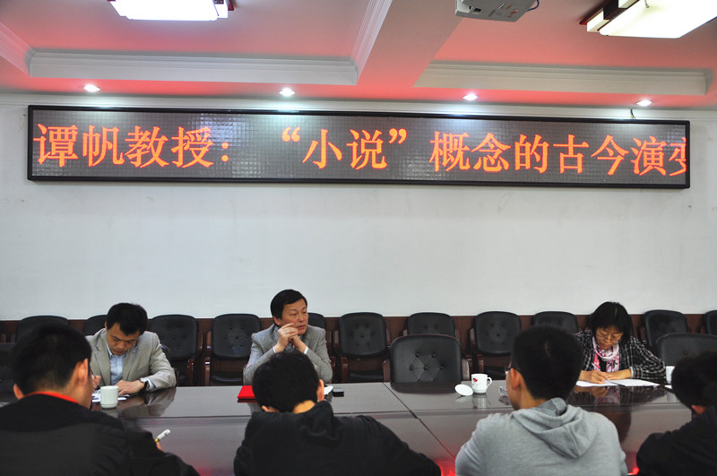 仪式结束后,谭帆教授做了题名为“小说概念的古今演变”的报告。谭教授详细介绍了“小说”这一概念变化的内涵,指出小说从古代传统的边缘地位成为“文学之最上乘”的演变过程及小说是虚构的叙事散文这一中心概念的确立过程。谭教授重点介绍了对小说概念近代化产生重要影响的两个人物:梁启超和鲁迅,强调了他们对近百年来中国人认识小说概念产生的深远影响。谭教授还引导同学们从正反两个方面来看待这一概念的历史演变。谭教授见解独到、思想深刻,赢得在场师生的一致称赞。这次报告,不仅加深了在场师生对“小说”概念的认识和了解,对增强同学们的古典文化修养也产生了积极意义。