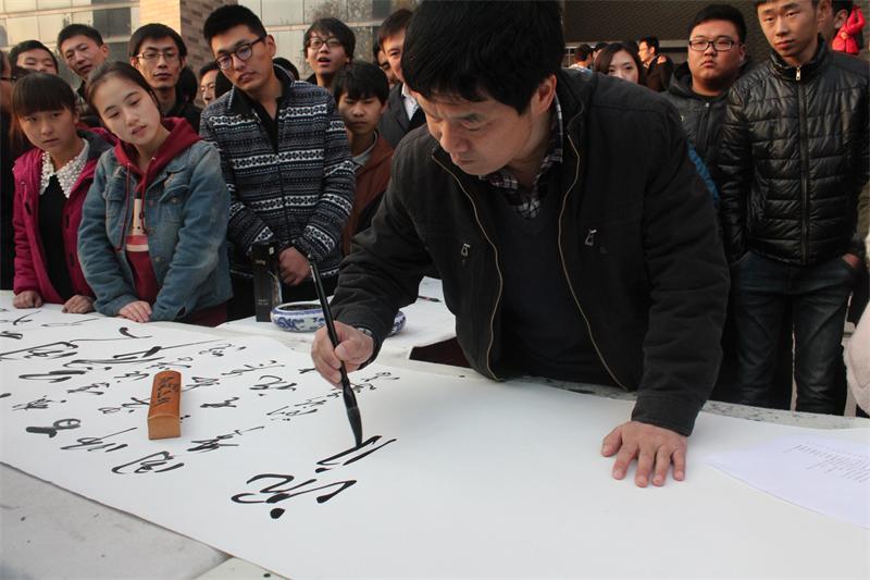 翰墨飘香,笔韵情长。1119日下午,我校书法学院书法文化艺术节之“师生共筑中国梦”百米长卷现书活动在大学生活动中心小广场举办。