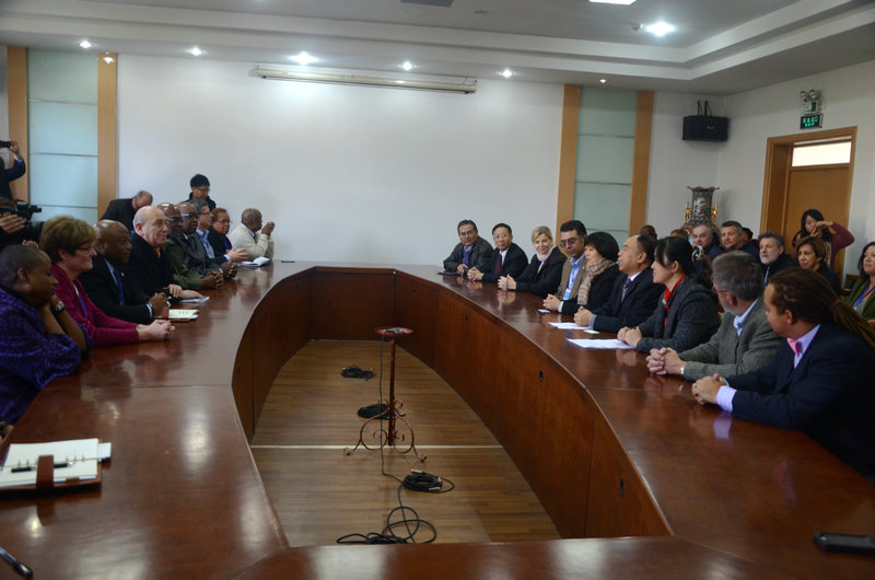 11月12日上午,参加“汉语桥——美国校长访华之旅”活动的美国大学校长代表团访问我校。校长傅永聚会见了代表团并举行了座谈,国际交流合作处负责人陪同会见。