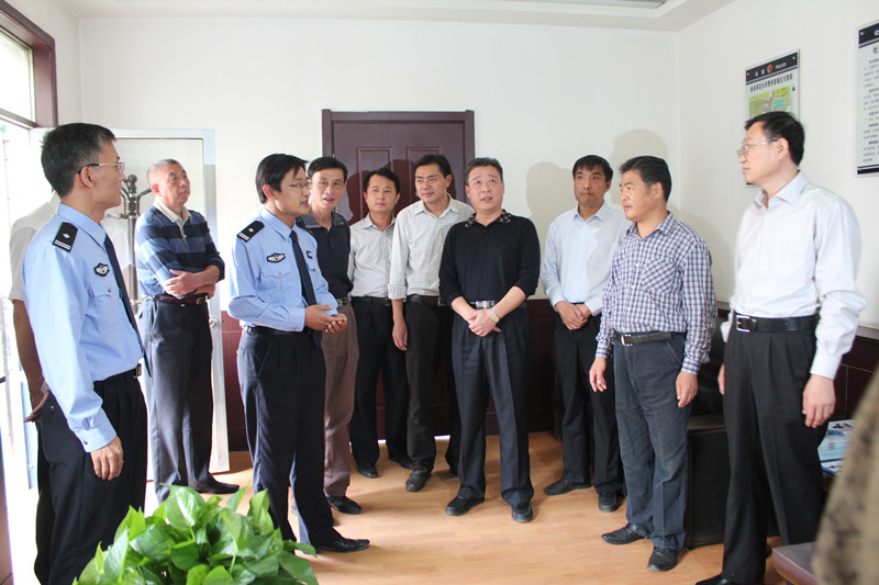 在听取了扈庆学的汇报之后,与会人员来到校园中进行了实地考察,参观了我校技防系统监控中心、机动车辆门禁管理系统、校园道路标识、警务室、清真食堂等关系到师生员工切身安全的各项设施的建设和使用情况。