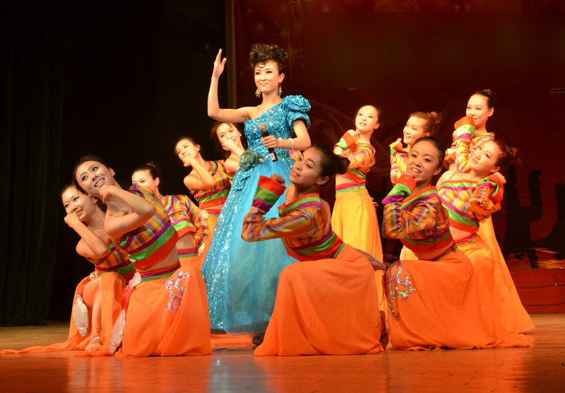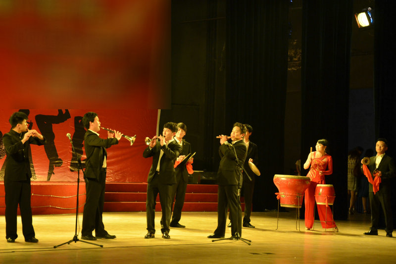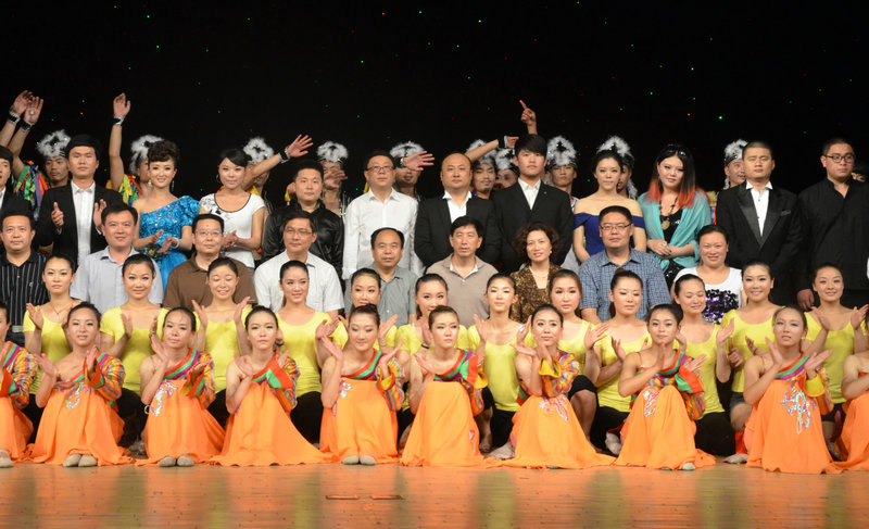 表演结束后,与会领导上台慰问演职人员,并合影留念。