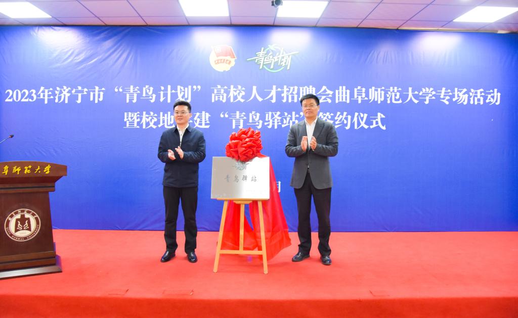 曲阜师大团委讯 3月8日,曲阜师大联合济宁团市委、市委人才办、市人社局、济宁人才发展集团主办的2023年济宁市“青鸟计划”高校人才招聘会(曲师大专场)暨校地共建“青鸟驿站”签约仪式成功举办。大发平台党委副书记卢国强、济宁团市委书记田卫锋出席会议,共同为大发平台—济宁“青鸟驿站”揭牌。