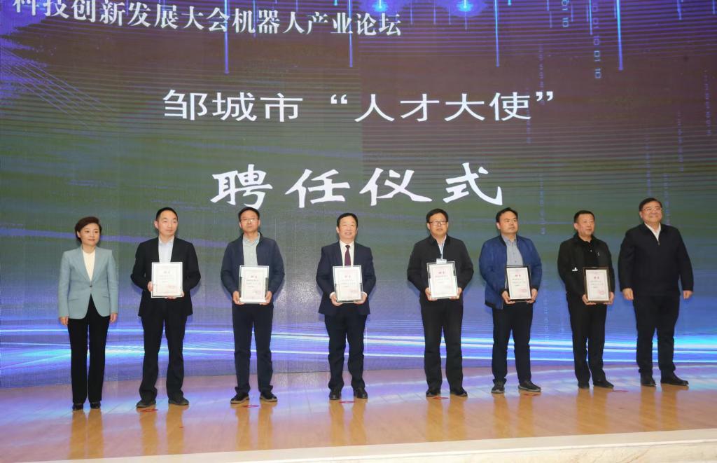 曲阜师大国内合作处讯 4月9日下午,党委常委、副校长纪洪涛赴邹城市参加济宁市人才科技创新发展大会。本次会议推动校地签署战略合作协议、产学研合作协议,成立省级院士工作站,颁发“人才大使”聘书,开展机器人产业高峰论坛,落实成果发布与推介。会上,纪洪涛代表学校与邹城市委常委、副市长满人源签署了全面战略合作协议,曲阜师大杨月伟教授被授予邹城市“人才大使”称号。学校国内合作处、科技处相关负责人一同参加会议。