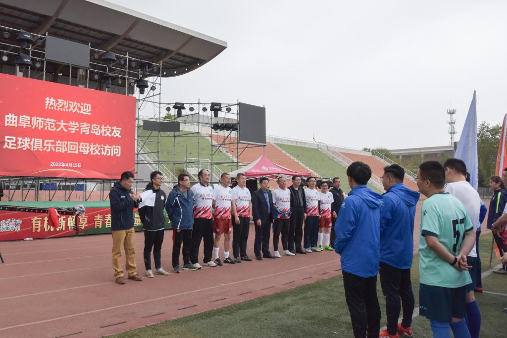 曲阜师大教职工足球队讯 4月15日,曲阜师大青岛校友足球俱乐部27名校友重回母校举办足球友谊赛,学校党委常委、副校长纪洪涛会见了校友并参加足球友谊赛启动仪式。