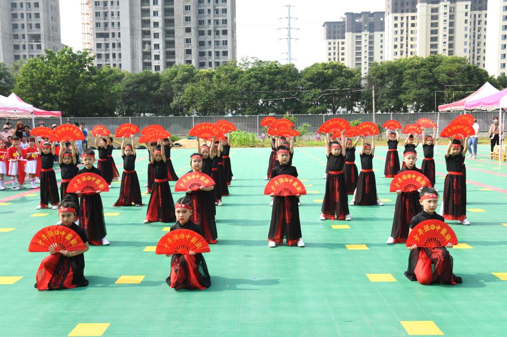 团体操表演在孔海燕老师和四位小朋友的主持下拉开序幕。整场演出精彩纷呈、妙趣横生。孩子们载歌载舞,放飞梦想,用精彩的演出表达着对党、对祖国、对师长的爱。少年智则国智、少年强则国强的《少年中国说》,心中有梦、眼中有光的《少年中国梦》,用微笑传递大爱的《你笑起来真好看》,带小朋友们启航理想、编织未来的《孩子的天空》等12个团体操节目轮番上演。现场气氛热烈、高潮迭起,优美的舞姿,生动的表演,充分展现了小朋友们昂扬向上、自信自强、朝气蓬勃的精神风采。
