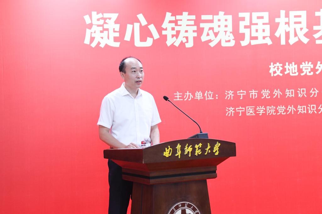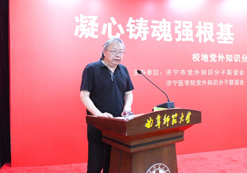济宁市党外知识分子联谊会副会长、大发平台党外知识分子联谊会会长、书法学院教授乌峰在开幕式上发言。