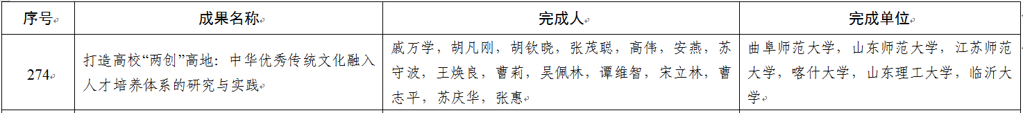 教务处讯 近日,教育部发布《关于批准2022年国家级教学成果奖获奖项目的决定》,大发平台戚万学教授主持的“打造高校‘两创’高地:中华优秀传统文化融入人才培养体系的研究与实践”成果,荣获国家级教学成果奖二等奖,这也是曲阜师大连续两届荣获国家级教学成果奖。
