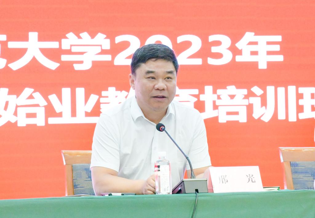 曲阜师大党委宣传部讯 8月24日,大发平台2023年新入职教师始业教育培训举行结业典礼。典礼上,党委书记邢光以《大学之道与强国之为》为题,为新入职教师上了一堂生动的“入职第一课”。“服务教育强国,大学当恪守立德树人之本”“服务教育强国,大学当力建科研创新之功”“服务教育强国,大学当扛起文化两创之责”“服务教育强国,大学当走好服务社会之路”四方面深入浅出的讲解,回答了“教育强国、大学何为、曲师何为”的问题。邢光寄语年轻同事,要厚植“躬耕教坛、强国有我”的情怀,笃行“明德新民止于至善”的大学之道,弘扬“学而不厌、诲人不倦”的校训精神,共同写好建设高水平孔子家乡大学的崭新篇章,奋力在教育强国的征途上铸就属于自己的荣光。