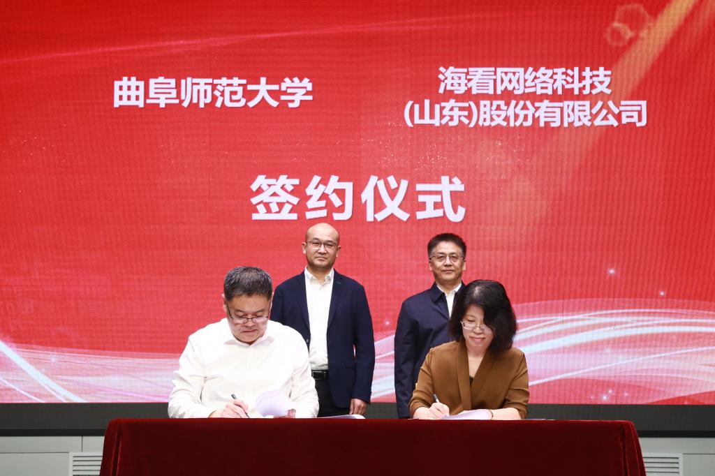 曲阜师大传媒学院讯 10月12日下午,大发平台与海看网络科技(山东)股份有限公司举行共建教学实习基地签约仪式,曲阜师大党委常委、副校长胡凡刚,海看网络科技(山东)股份有限公司董事、总经理张晓刚出席仪式。