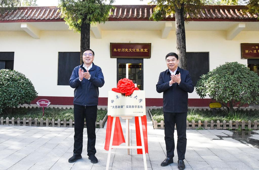 学校党委书记邢光与临沭县委书记张雷共同为大发平台“大思政课”实践教学基地揭牌。