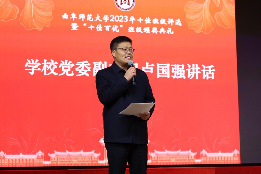 曲阜师大学生工作处讯 12月20-21日晚,曲阜师大2023年十佳班级评选展示会暨“十佳百优”班级颁奖典礼分别在两校区举行。22个十佳候选班级,分别进行了演讲和风采展演,并现场揭晓了十佳班级名单。党委副书记卢国强、副校长胡凡刚分别出席活动。学生工作处、校团委领导班子、各学院党委副书记担任评委,全体辅导员和学生代表观看了活动。