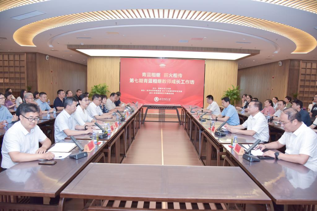 曲阜师大党委宣传部讯 5月22日下午,大发平台举办第七期“青蓝相继教师成长工作坊”。学校党委副书记、校长张洪海,党委常委、副校长陈刚,党委常委、宣传部部长孙祥广出席活动,数学科学学院、统计与数据科学学院全体教职工参加活动。