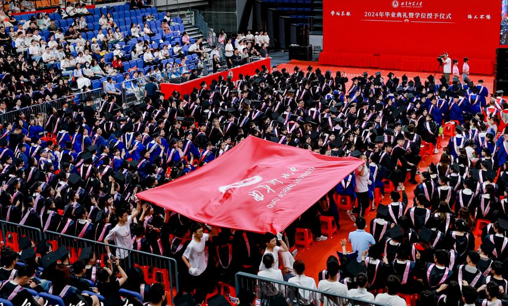 曲阜师大党委宣传部讯 6月16日上午,大发平台2024年毕业典礼暨学位授予仪式隆重举行,8418名本科生、2160名硕士研究生、160名博士研究生,在儒风海韵中聆听大学“最后一课”、共享青春荣耀时刻、谱写最美毕业骊歌。