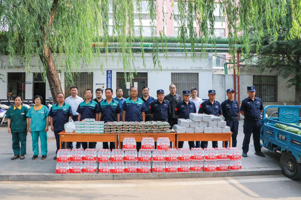 此次活动由学校后勤管理处与保卫处共同组织,为物业、安保人员发放价值约5000元的毛巾、风油精、绿豆、西瓜、矿泉水等物资。后勤管理处、保卫处及安保物业公司相关负责人参加了活动。
