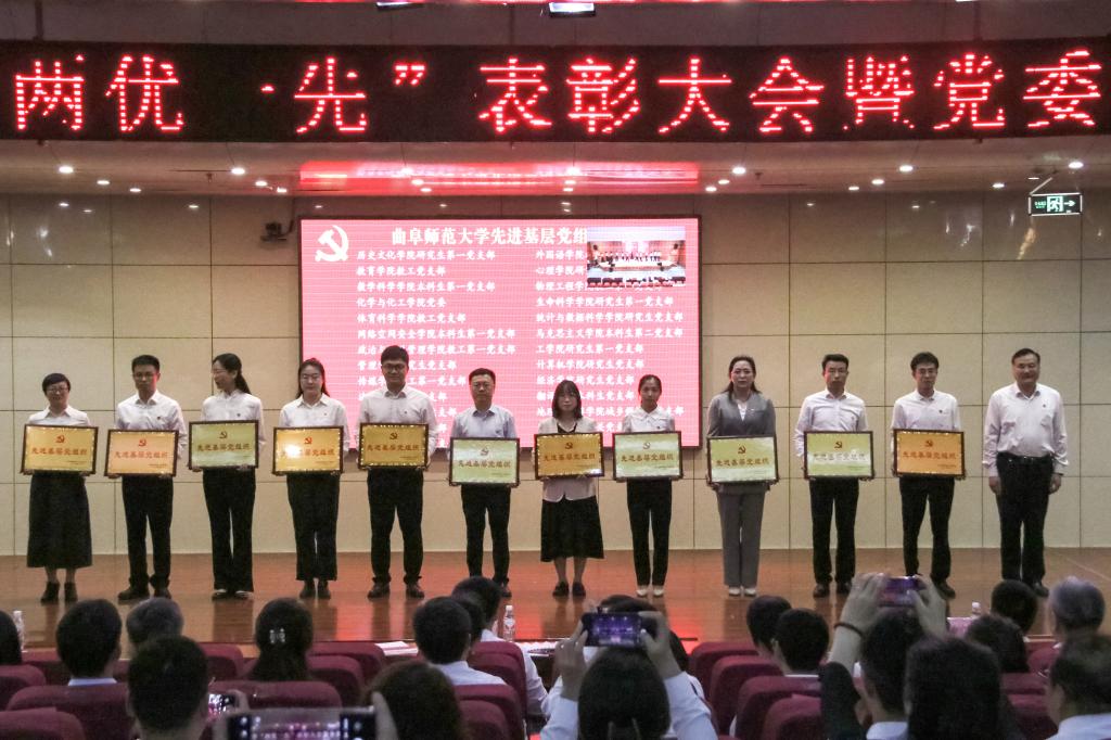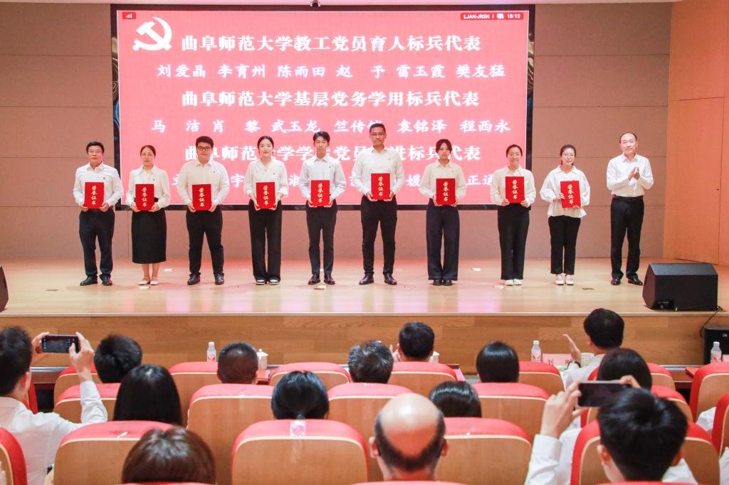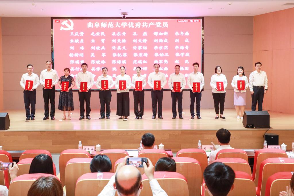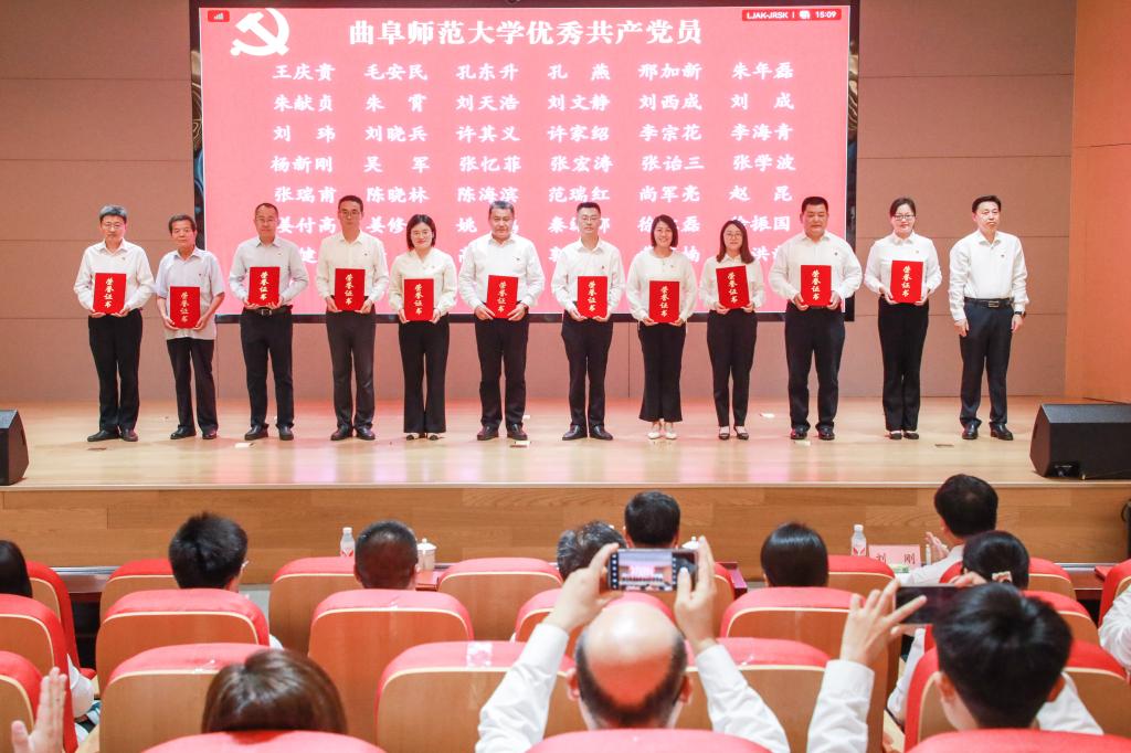 邢光指出,曲阜师大建校69年来,始终与党和国家同呼吸共命运,始终与时代的脚步同频共振。一代又一代曲园人、一批又一批党员先锋,不忘初心、牢记使命、锐意进取、砥砺前行,以爱党报国精神为旗帜,秉承“学而不厌、诲人不倦”校训,积淀形成了崇真尚实、弘毅致远、立己达人的价值追求和艰苦奋斗、自强不息、敢为人先的精神特质,书写了高质量发展的辉煌篇章。全校各级党组织和广大党员是推动学校各项事业发展最重要的中坚力量,是一个用行动和成绩证明战斗堡垒和先锋榜样作用的“光荣的集体”。