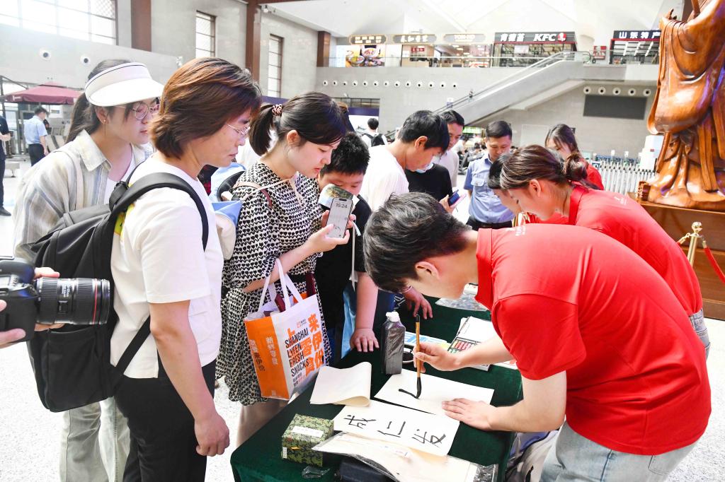 诗词飞花令、手绘中国地图、书法展演、标本制作、理疗保健……100多名学生纷纷变身能工巧匠,秀出了专业技能的新高度,为大家的盛夏旅程带来别样活力,彰显了大学师生的多彩魅力。大发平台建设的教师博物馆将与曲阜高铁东站合作设立尊师优享服务台,携手擦亮孔子故里尊师重教的“最美名片”。通过这一创新服务,旅客凭教师有效身份证明可在候车期间享受一杯尊师香茶、品尝由志愿者现场制作的孔府非遗“师道点心”、体验拓印孔子行教像。服务台还展示了“七一勋章”获得者张桂梅、人民教育家于漪、全国最美教师黄大年等名师大家的珍贵教育文物,开展“寻找教师之道”互动答题,赠送教师主题文创作品。活动展示将优秀传统文化与文明出行的理念融合传播,让广大旅客目不暇接,赞不绝口。