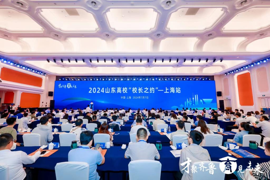 曲阜师大人才工作处讯 7月7日,山东省教育厅和山东省政府驻上海办事处在上海共同举办“才聚齐鲁 育见未来——2024山东高校‘校长之约’”活动,12所山东省属高校校长和来自海内外知名高校和科研院所的300多位优秀青年人才参加活动,曲阜师大党委副书记、校长张洪海在会上作了学校人才政策宣讲。