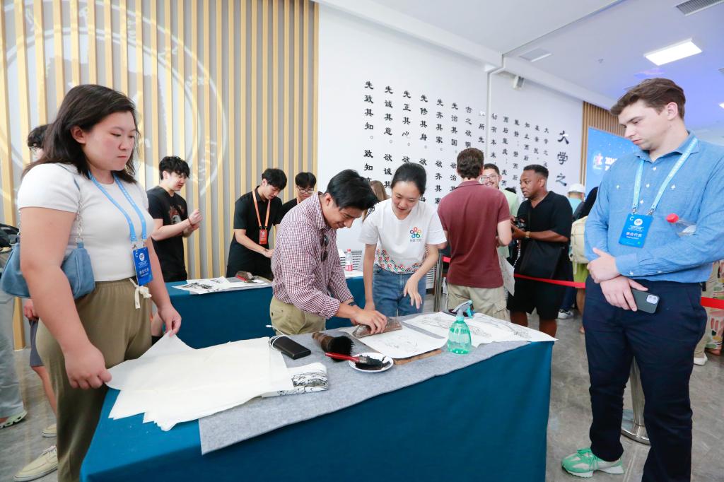 “文化因交流而进步,文化因互鉴而多彩”。参访期间,美国青年朋友与大发平台学生、香港教育大学学生共同学习、相互交流,展开了一场文化交流的盛宴。在中方青年指导下,美国青年兴致勃勃地参与学习传统礼仪、书法临摹、投壶体验、拓印孔子像、制作孔府糕点、包水饺等,从中体会到中华文化的魅力和博大精深。