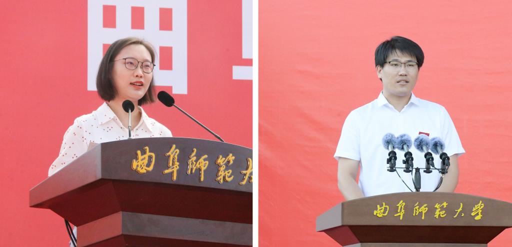 “愿你们有敢教日月换新天的豪情,风雨不动安如山的气概,腹有诗书气自华的底蕴,坚定信念,勇毅前行,在曲园书写人生的绚丽篇章!”物理工程学院教师邢相灼在典礼上致辞,勉励新同学立鸿鹄志,厚植家国情怀;求真学问,培养创新能力;做众行者,学会团结协作。