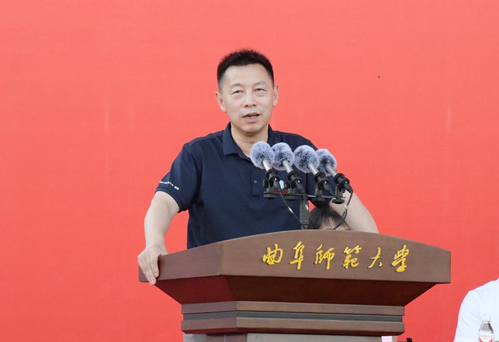 学校党委领导班子成员张洪海、李志红、李兆祥、胡凡刚、刘刚、陈刚、纪洪涛、王明科、孙祥广,曲阜师大1994级地理系校友、北京师范大学教授、国家重点研发计划主持人、国家杰青、万人计划科技创新领军人才张强教授,曲阜师大1989级生物系校友、中国科学院动物研究所研究员、山东大学生命科学学院院长、国家杰青、万人计划科技创新领军人才刘峰教授,出席典礼。学校党政机关各部门、各单位负责人,各学院师生代表以及2024级全体新生参加典礼。