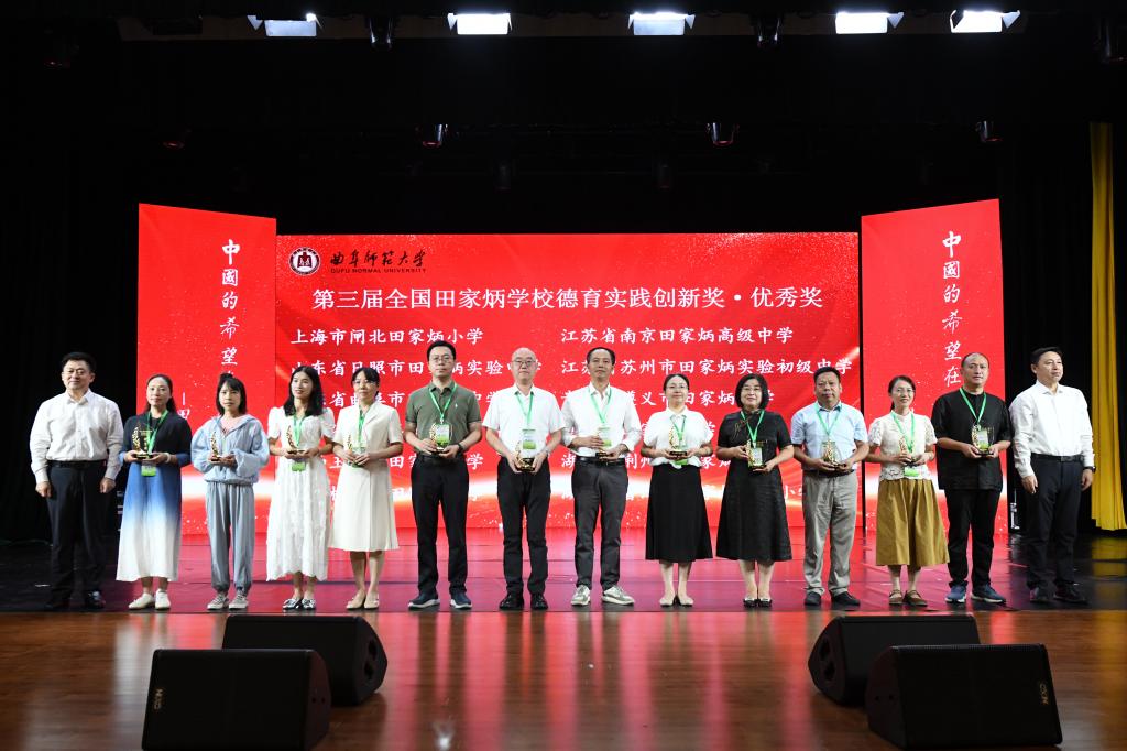 随后,唐爱民汇报评选工作并宣布获奖名单。经过14位国内资深德育专家的参与指导,共评选出18个获奖项目,其中6项获“德育创新卓越奖”,12项获“德育创新优秀奖”。田庆先为第三届全国田家炳学校德育实践创新奖·卓越奖颁奖,戚万学、张洪海为第三届全国田家炳学校德育实践创新奖·优秀奖颁奖。