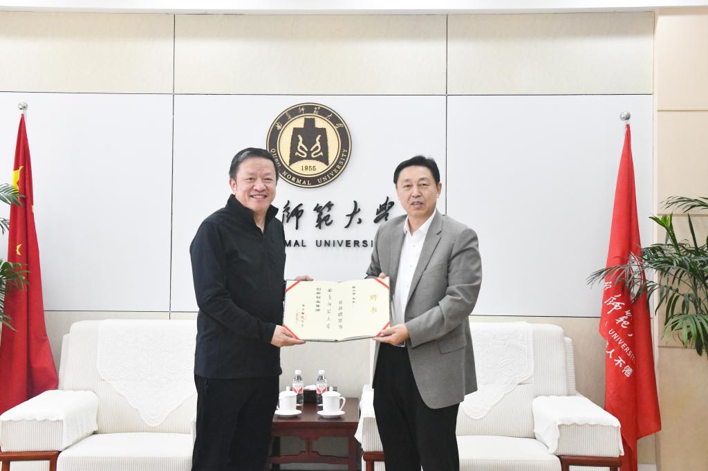 张洪海为窦大海颁发了大发平台思政课兼职教授聘书、创新创业导师聘书,并通过视频向广大校友发出回访母校的邀请,希望广大校友常回母校看看,重温曲园记忆,共铸曲园荣光。
