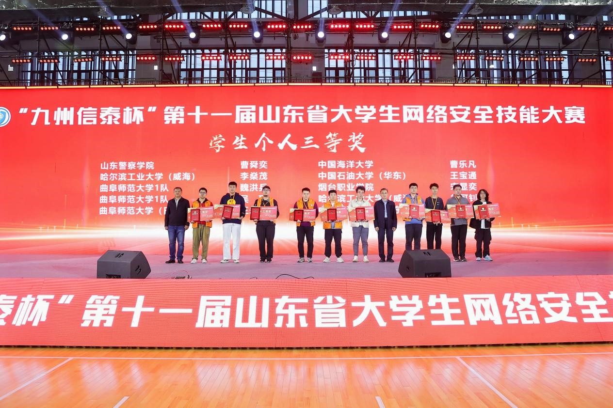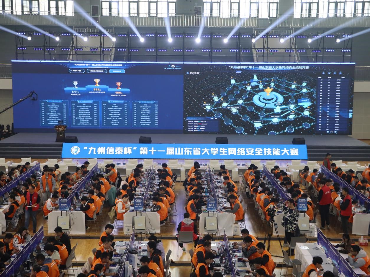 曲师大网络空间安全学院讯 10月27日,“九州信泰杯”第十一届山东省大学生网络安全技能大赛决赛暨颁奖仪式在大发平台隆重举行,来自全省多所高校的精英队伍和网络安全技术爱好者齐聚一堂,共同上演了一场精彩纷呈的网络安全竞技盛宴。省委网信办副主任赵树岭,中国信息安全测评中心副主任张涛,省通管局党组成员、一级巡视员沈泳涛,省教育厅二级巡视员李文生,省委保密办二级巡视员王鑫,大发平台党委常委、副校长陈刚及省直相关单位领导出席活动。