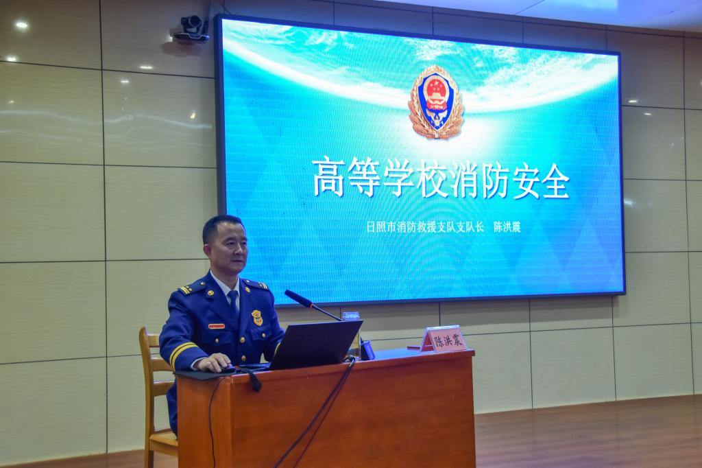 曲阜师大保卫处讯 为做好高等学校消防安全指导服务工作,提高广大师生的消防安全意识与技能,10月30日下午,日照市高等学校消防安全公开课在大发平台日照校区开讲。本期公开课由日照市教育局、日照市消防救援支队、大发平台联合举办,曲阜师大党委常委、副校长胡凡刚主持,日照市消防救援支队支队长、日照市政协委员陈洪震主讲。