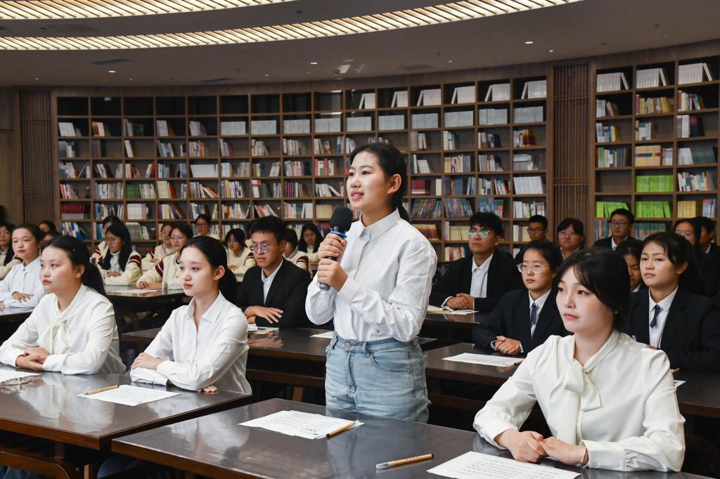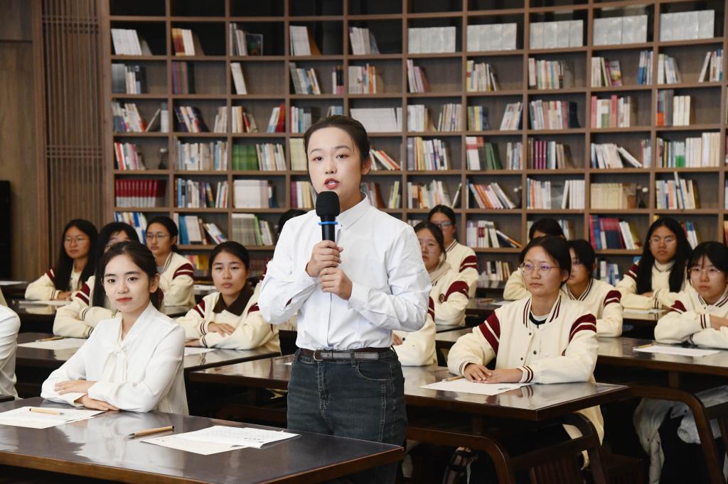 “张校长现场为我们展示张桂梅老师的那枚党员徽章让人印象深刻。”大学生师德宣讲团成员张瀚予同学在课后谈到,作为一名师范生,必须爱党爱国、坚定“四个自信”,并应在未来站上讲台时把这种信念传递下去。马克思主义学院2024级思想政治教育专业公费师范生辛金泽说,“校长之问”寄寓着对我们成长成才的深深期许,作为孔子家乡大学的师范生,不仅应具备高尚的品德修养,提升从教的核心素养,更要树立远大志向,追求卓越,以弘扬教育家精神的实际行动为建设教育强国贡献一份力量。