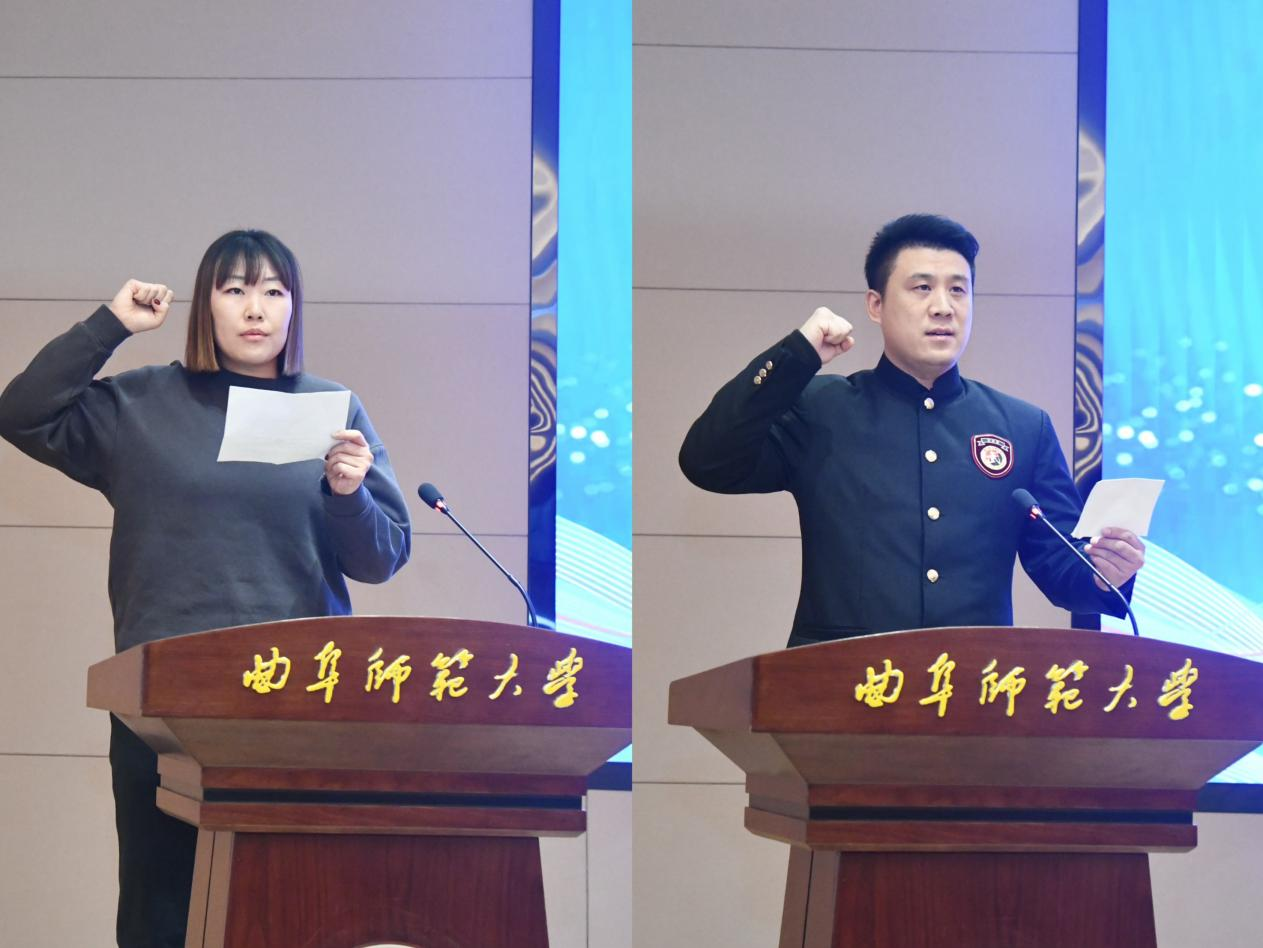 开幕式由体育学部主任兼体育科学学院院长、公共体育教学部主任姜付高主持。烟台工程职业技术学院教师周榕代表全体参赛教师宣誓;大发平台体育科学学院武术教研室主任、山东省第五届高校体育教师基本功大赛武术项目总裁判长樊腾飞代表全体裁判员宣誓。