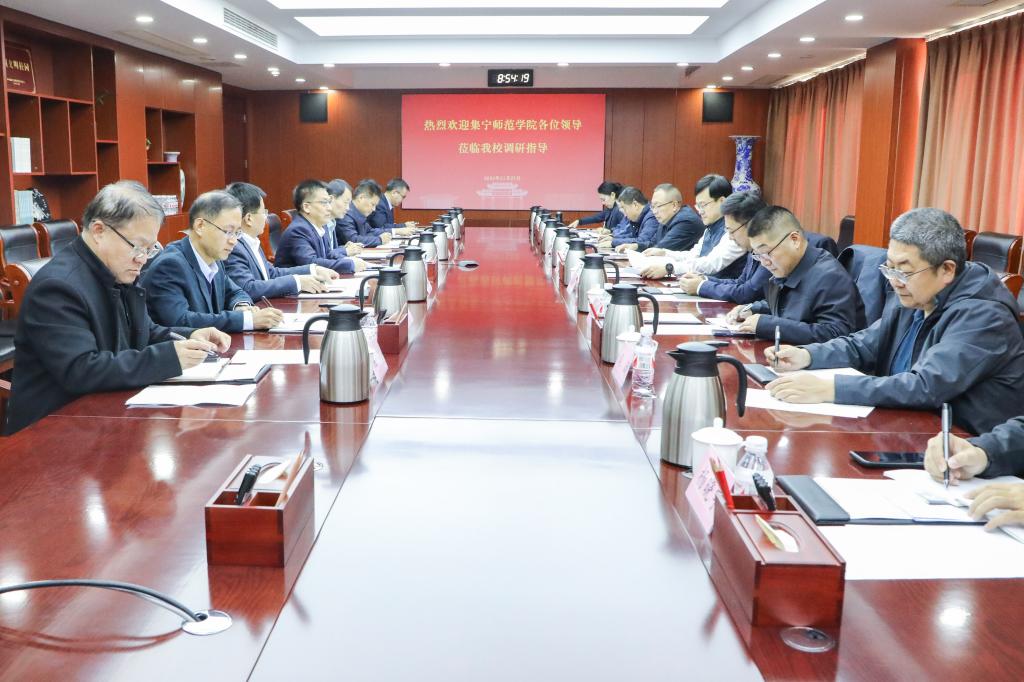 党委宣传部讯  11月27日,集宁师范学院党委副书记、校长张宝成,党委委员、副校长拓俊杰一行到曲阜师大访问交流。曲阜师大党委副书记、校长张洪海,党委常委、副校长胡凡刚会见张宝成一行并座谈。