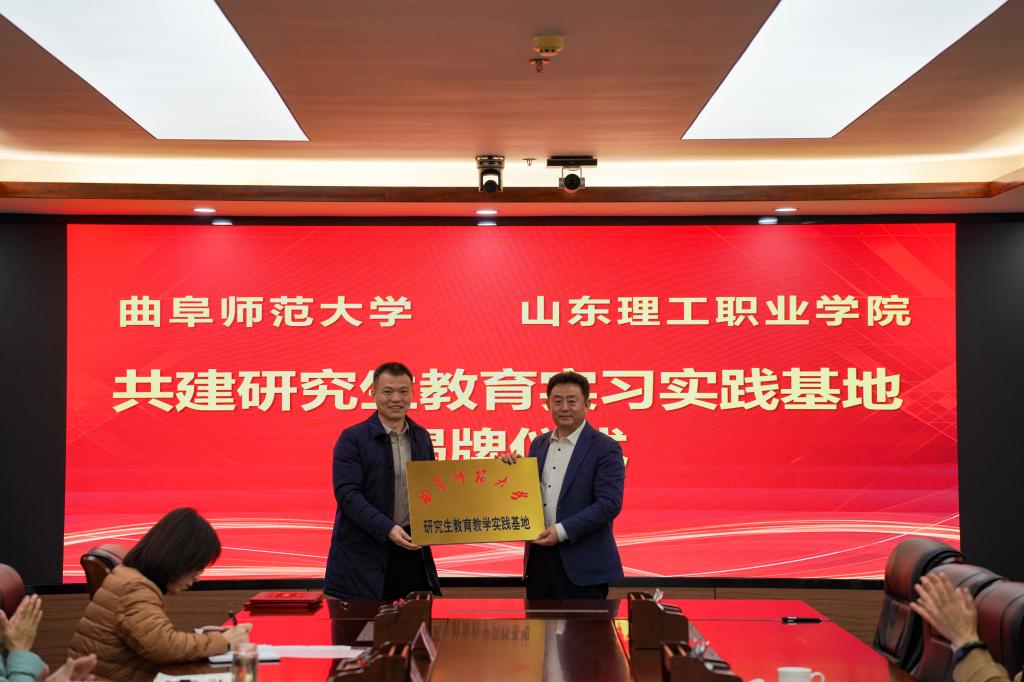 仪式上,纪洪涛和张隆海共同为“大发平台研究生教育教学实践基地”揭牌,郝民与刘敏分别代表两校签订《大发平台与山东理工职业学院共建“大发平台研究生实践基地”协议书》。