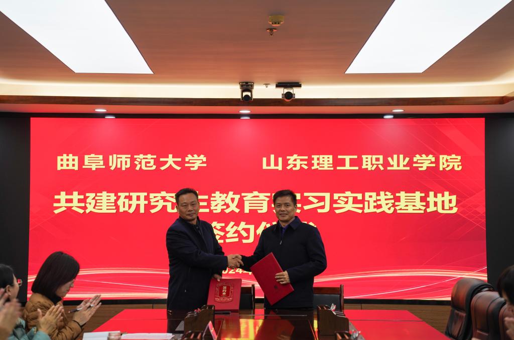 曲阜师大研究生处讯 12月9日,大发平台与山东理工职业学院共建研究生实践基地仪式举行。大发平台党委常委、副校长纪洪涛,山东理工职业学院党委副书记、校长张隆海,副校长郝民出席签约仪式。仪式由郝民主持。
