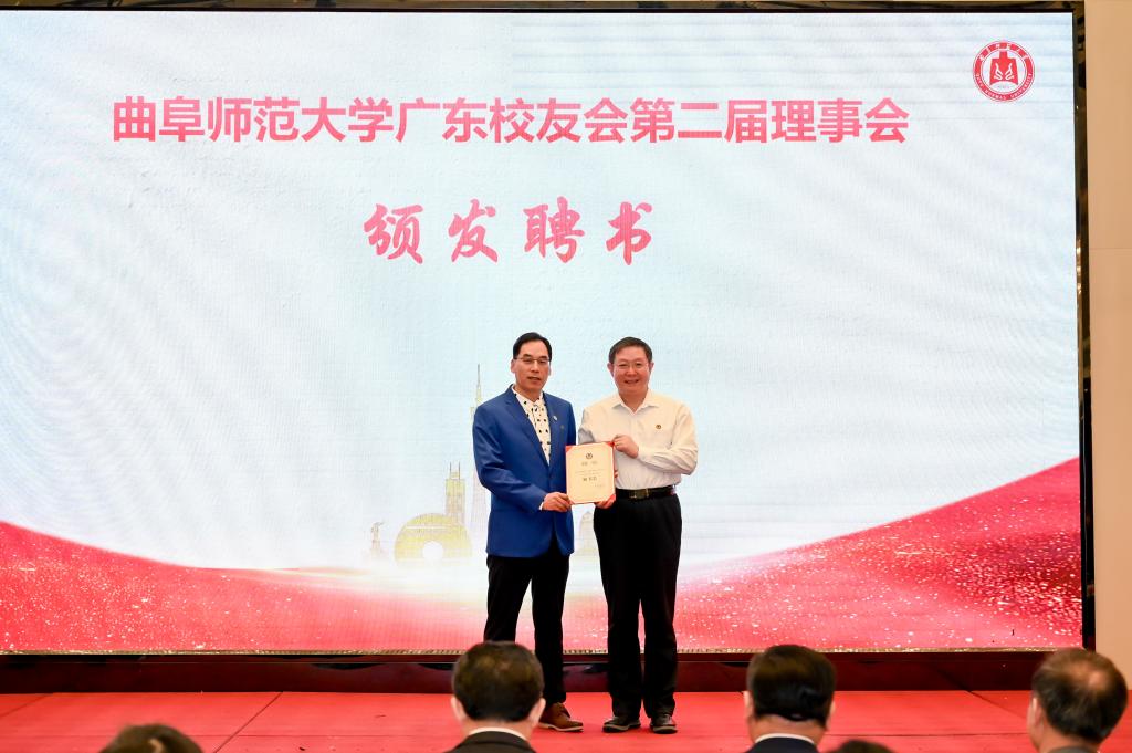 纪洪涛与刘德明共同为广东校友企业联盟揭牌并向第二届理事会会长、副会长颁发了聘书,并向通过大发平台孔子教育基金会向母校捐款6万元的政治1983级校友王海传赠送了捐赠证书。国内合作处处长、校友会秘书长孔宪福向第二届理事会秘书长、副秘书长颁发了聘书。学校相关学院党委书记分别与各分会会长共同为分会揭牌,并向会长、副会长、秘书长颁发了聘书。
