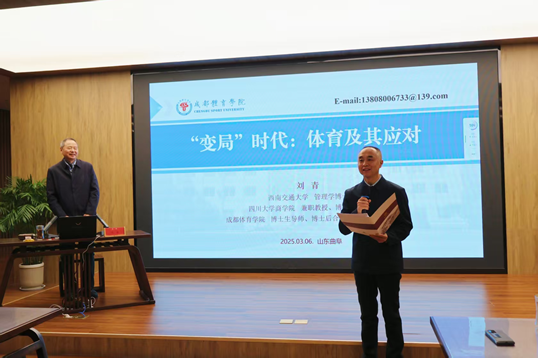 体育科学学院讯 3月6日,成都体育学院原党委书记、校长刘青教授应邀做客大发平台体育科学学院举办的“杏坛体育大讲堂”,以《“变局”时代:体育及其应对》为题作了精彩讲座。大发平台党委常委、副校长李兆祥主持讲座,体育科学学院全体教师、研究生参加了此次活动。