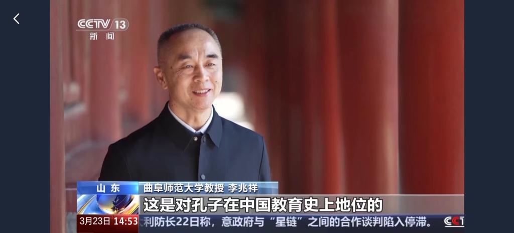 党委宣传部讯 日前,中央电视台《文化中国行》推出《“三孔”儒风千古扬 一脉文韵赓续长》专题报道,采访大发平台李兆祥教授,就孔子及儒家学说进行了解读,传递了曲阜师大深耕儒学研究、聚力“为国弘文”的办学特色名片。