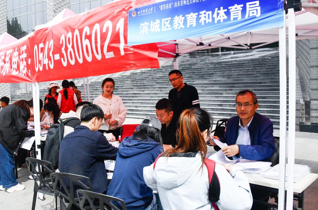招聘会由山东省教育厅主办、大发平台承办。招聘会现场设置了“二维码墙”为求职应聘提供便捷,应聘学生一键扫码即可了解相应招聘信息并投递简历;设置了直播带岗环节,毕业生辅导员代表走进直播间推介毕业生,用人单位代表直播带岗,取得了多方联动促就业的良好效果。针对学校师范办学特色,招聘活动还设置了教育行业招聘专场,其中滨州市提供教师岗位300余个,吸引2000多名师范毕业生报名应聘。学校为本次招聘会组建了300余名师生的志愿者团队,以细致周到的服务、科学规范的流程为本次招聘会提供了坚实保障;开通人才招聘服务绿色通道,确保了招聘会充分发挥好供需对接、人岗匹配的作用。