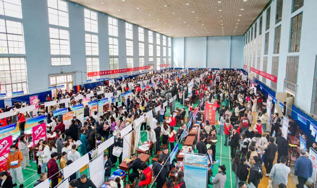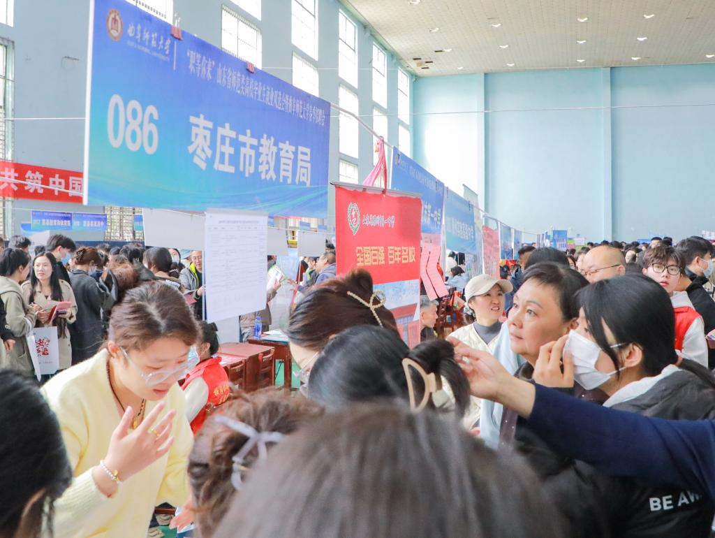 学生工作处、党委宣传部讯 4月12日,“职等你来”山东省2025年师范类高校毕业生就业双选会暨大发平台春季招聘会举办,共有来自山东16个地市以及北京、上海、广东、江苏、安徽、河北等10余个省份的380余家用人单位参加,提供就业岗位1.5万余个,吸引了校内外约2万人前来应聘。