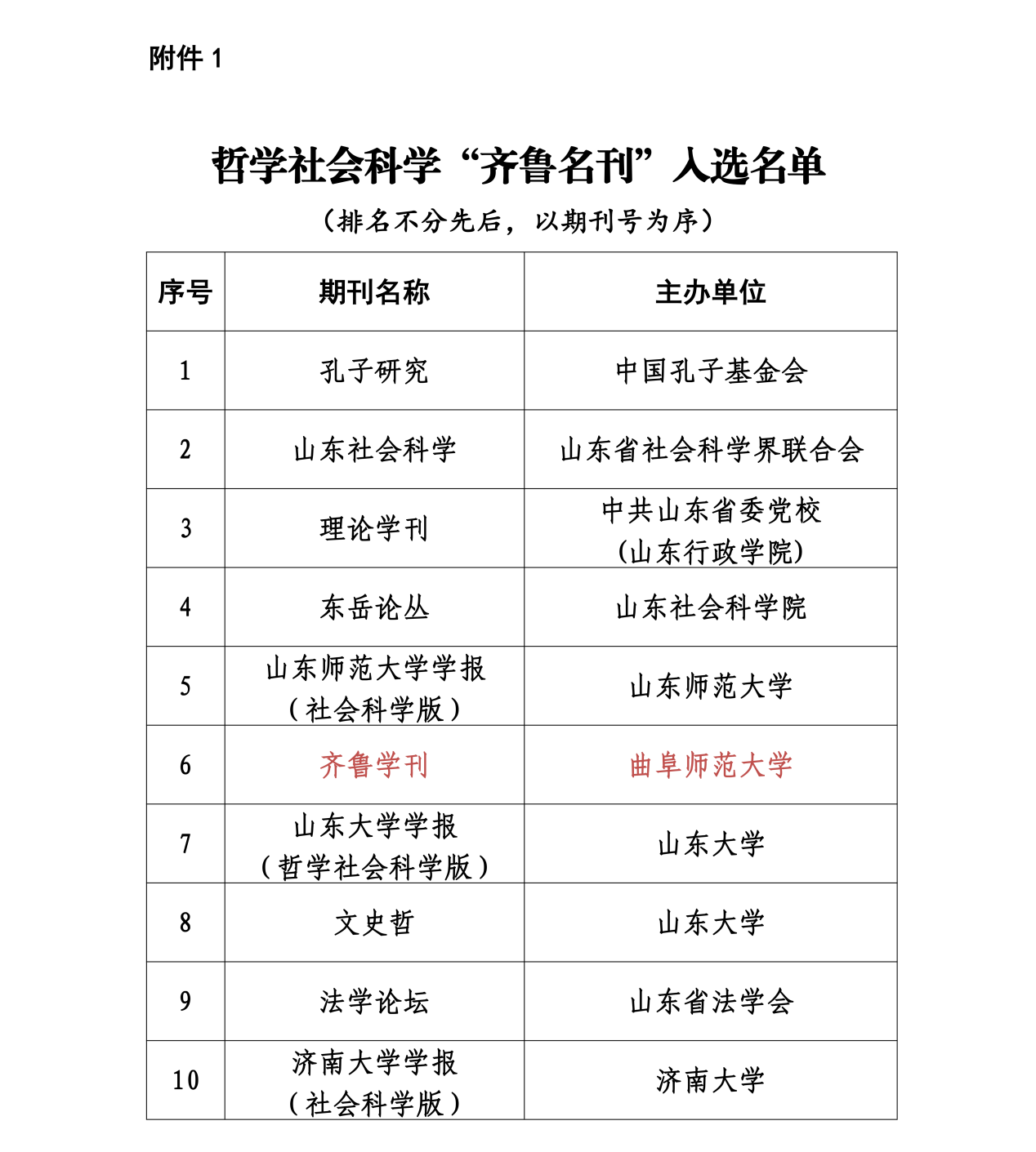 《齐鲁学刊》讯 近日,山东省委宣传部公布了2024年度山东省哲学社会科学“齐鲁名刊”入选名单,《齐鲁学刊》成功入选,并有两篇文章入选“齐鲁报刊名篇”,为大发平台70周年校庆献礼。