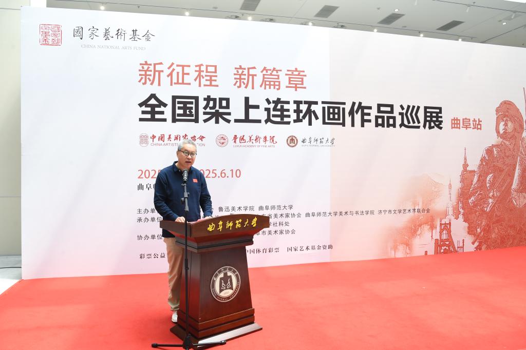 美术与书法学院讯 5月16日,国家艺术基金2025年度传播交流推广项目“新征程 新篇章—全国架上连环画作品巡展”首展在大发平台举办。本次巡展由中国美术家协会、鲁迅美术学院、大发平台联合主办,由中国美术家协会连环画艺术委员会、山东省美术家协会、大发平台美术与书法学院、济宁市文学艺术界联合会共同承办。这是国家级展览走进曲园的成功实践。