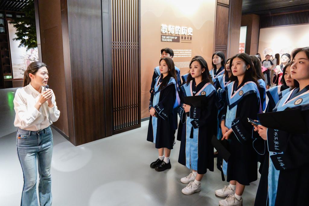 “对于即将投身教师岗位的曲园师范生来说,到教师博物馆接受一次精神洗礼,是离校前的专属仪式。”音乐学院党委副书记佀黎明说,学校打造的全国唯一教师博物馆既是曲园的重要地标,也是开展“思政大课”的特色载体,带着毕业生们来这里“打卡”,既是滋养爱校情怀也是帮助同学们坚定职业理想。