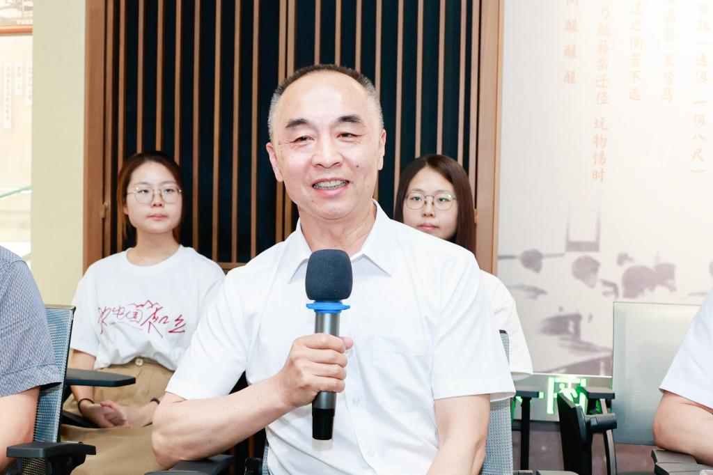 党委宣传部讯 6月10日,“杏坛下午茶”第二期活动在教师博物馆举办,香港教育大学国学中心执行联席总监周立及40名大学生,大发平台党委常委、副校长李兆祥,党委常委、宣传部部长孙祥广,大学生师德宣讲团成员等共品一杯清心茶、共学一位大先生,在品茶论道中解疑释惑、见贤思齐。