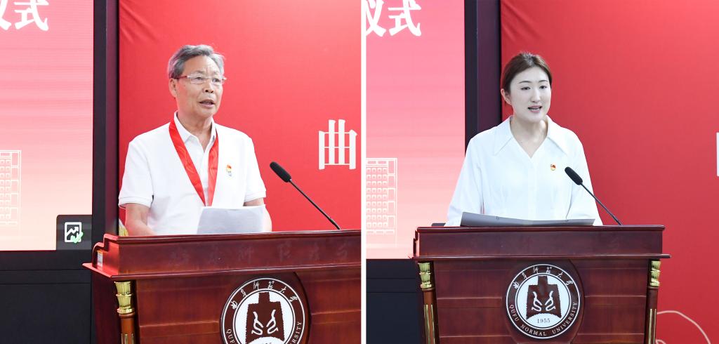 老党员代表韩兆义与学生党员代表路璐分别发言