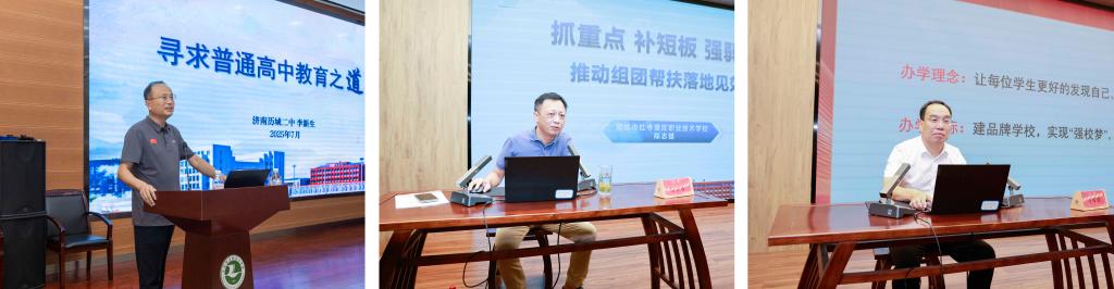 培训注重问题导向和实践提升。安排了校长领导力工作坊和教学改革工作坊。高中领导人员围绕高中书记校长办学治校能力提升、创新人才培养与特色学校建设、人工智能与教学改革、家校社协同育人与教育生态构建等专题进行了深入研讨,共同探讨了新时代高中教育的发展路径;骨干教师则围绕新课标下的语文、英语教学实践、阅读策略、信息技术与语文教学的融合、“同课异构同课再构”教研模式等议题,解读案例,分享经验,畅谈从教感悟以及提升学生学习内驱力和教师自身教研水平的良策。期间,学员们前往济南历城二中进行了实地考察,全国优秀教师、全国领航校长、齐鲁名校长李新生作了《高中学校管理与特色化办学的实践路径》的报告,分享了历城二中如何通过英才教育、科创教育、艺体教育这三张“名片”,为国家人才战略强基铸魂的宝贵经验。