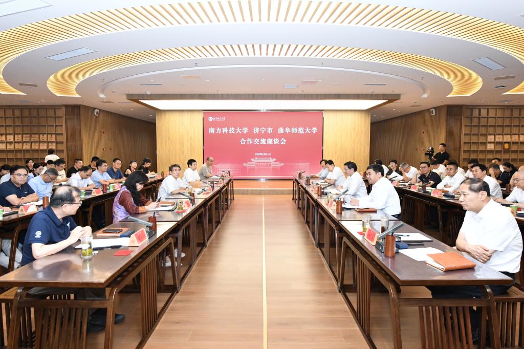 南方科技大学党委常委、副校长方红卫,党委常委、党委组织统战部部长史江红,济宁市委常委、秘书长、一级巡视员董波,济宁市副市长李丽,曲阜师大党委常委、副校长李登旺,党委常委、组织部部长王明科,党委常委、宣传部部长孙祥广以及两校相关部门和单位负责人参加座谈会。