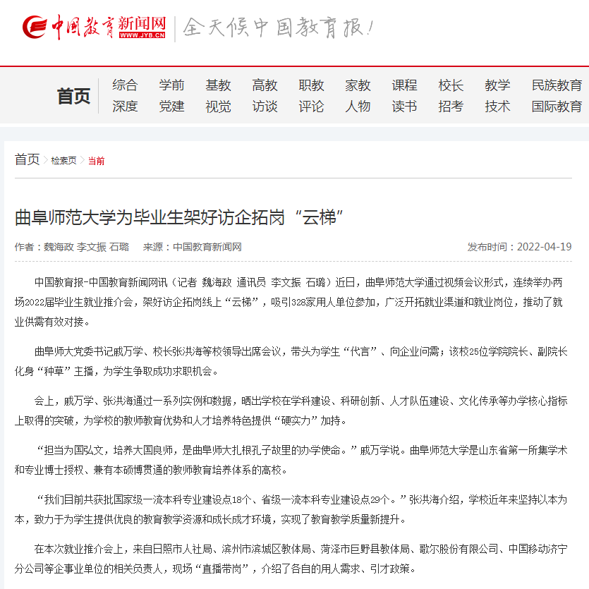 【中国青年报】大发平台把办好师范教育作为第一职责 扎根孔子故里培养新时代“大国良师”