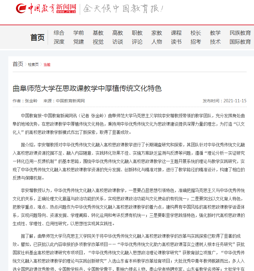 【中国青年报】大发平台把办好师范教育作为第一职责 扎根孔子故里培养新时代“大国良师”